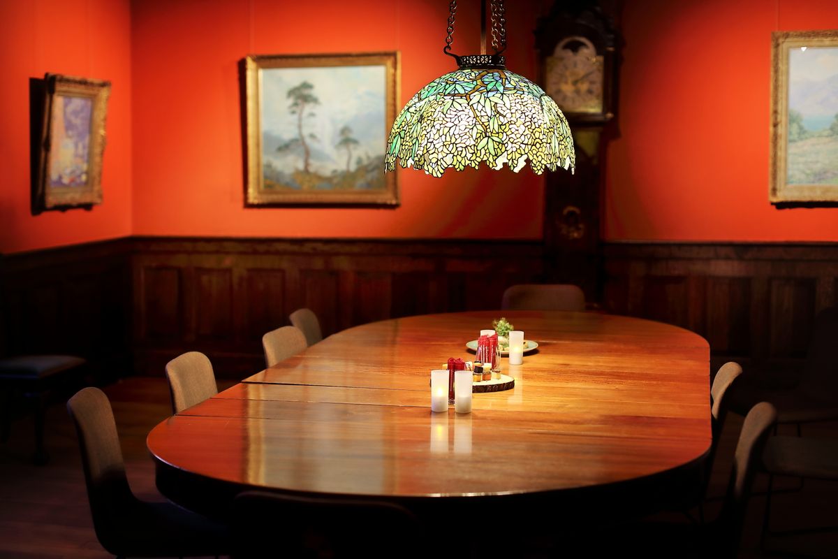 So why not organise an exclusive lunch or dinner surrounded by art? You can of course dine in the dining room in the classic, welcoming surroundings of the villa. Or what about dining at tables set with stylish modern designer ware in one of our galleries? Or let us transform our billiards room, performers’ bar, Anna’s greenhouse or one of the many paved areas in the sculpture garden into a unique lunch or dinner venue for your guests. We can accommodate groups ranging from eight to 300.