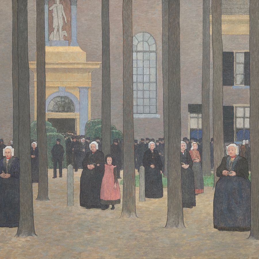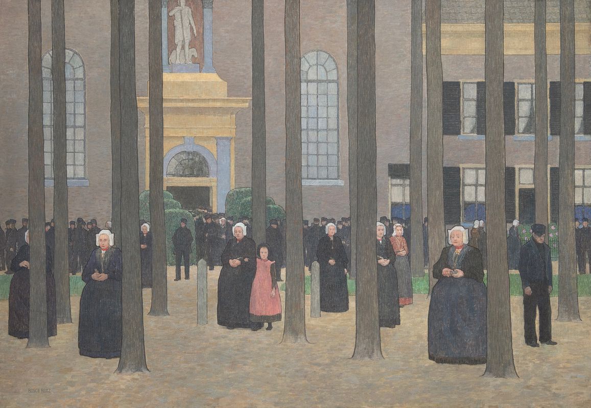 Gijs Bosch Reitz, Kerkuitgang van de oude St. Janskerk te Laren, 1893, olieverf op doek, 91 x 136 cm (118 x 158,5 x 7 cm), Singer Laren, schenking familie Six 1997