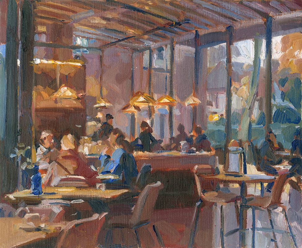 Ik werk met olieverf omdat ik daarmee snel en direct kan schilderen. Mijn schilderijen maak ik altijd ‘alla prima’, in één sessie, zodat het werk spontaan en levendig blijft.