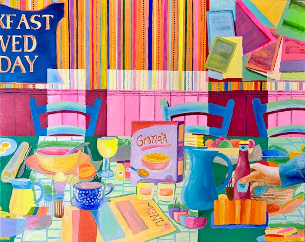 In zijn werk zoekt hij naar momenten van rust en vertraging, een soort ‘time out’ in een wereld die steeds sneller lijkt te draaien. Hij schildert scènes die op het eerste gezicht alledaags zijn, maar die juist door kleur, compositie en ritme een bijzondere uitstraling krijgen. Zijn schilderijen zijn herkenbaar, maar tegelijk teruggebracht tot heldere vormen en krachtige vlakken.