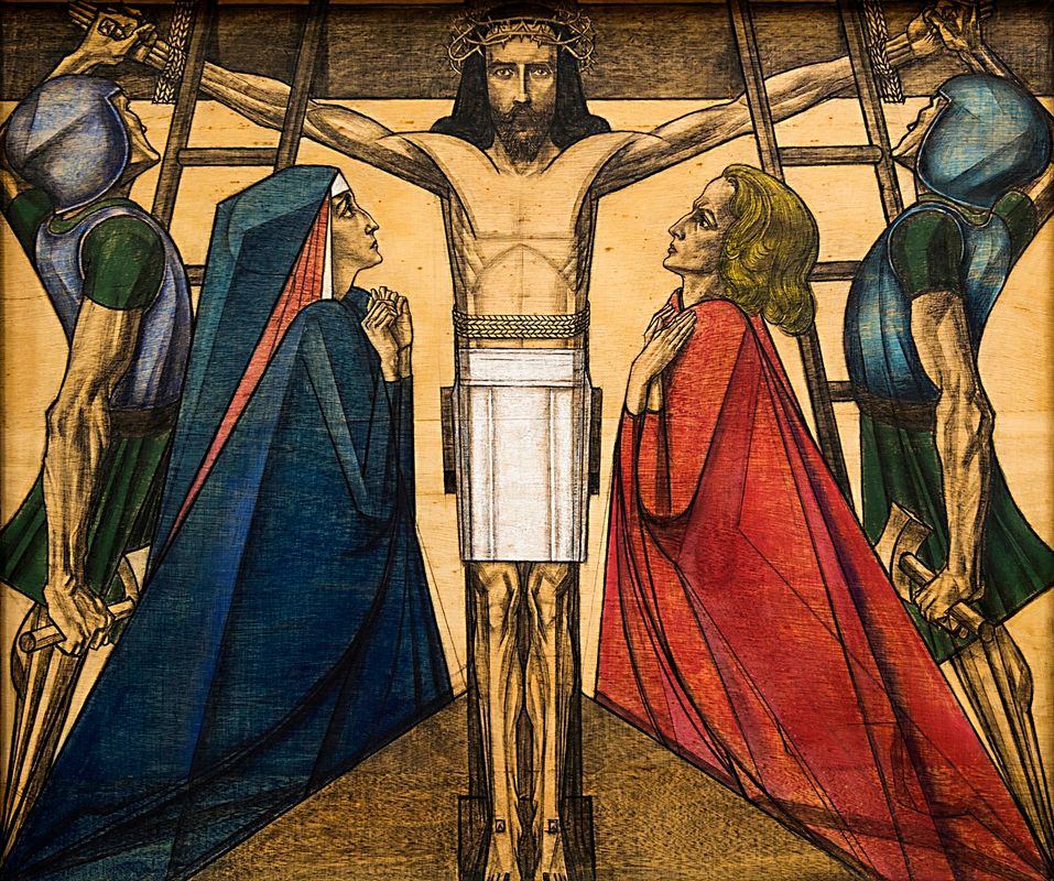 La présentation des Quatorze Stations du Chemin de Croix, un prêt de l’église Saint-Bernulf d’Oosterbeek à l’occasion de l’exposition Les mondes de Jan Toorop, est exceptionnelle. Le traitement raffiné des détails et les lignes expressives clairement visibles de ces dessins à la craie sur panneau, réalisés entre 1916 et 1919, constituent un point culminant de l’oeuvre religieuse de Toorop, qui s’est converti au catholicisme au début du siècle. Une station du chemin de croix est une représentation – peinture, sculpture, relief… – d’une scène de la Passion du Christ. Ensemble, les quatorze stations forment une série dévotionnelle destinée à méditer étape par étape la dernière phase de la vie du Christ. Les Quatorze Stations du Chemin de Croix de Toorop ont pu être préservées grâce à leur mise en sécurité dans un coffre-fort en 1944, lors de la bataille d’Arnhem. Il s’agit de la première exposition de la série complète en dehors de l’église.